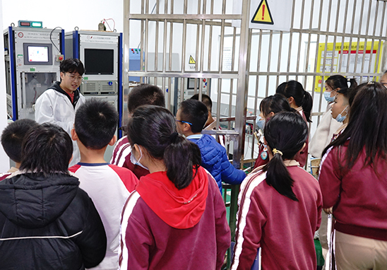 在參觀過程中,學(xué)生們對各個演示區(qū)的設(shè)備裝置充滿了好奇,優(yōu)科工程師耐心為大家講解及演示,也在保證安全的前提下讓學(xué)生們有自己動手體驗的機會。