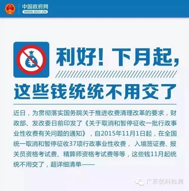 根據(jù)國家認(rèn)監(jiān)委最新發(fā)布的消息《財政部國家發(fā)展改革委關(guān)于取消和暫停征收一批行政事業(yè)性收費有關(guān)問題的通知》(財稅﹝2015﹞102號)有關(guān)事項,通知如下: