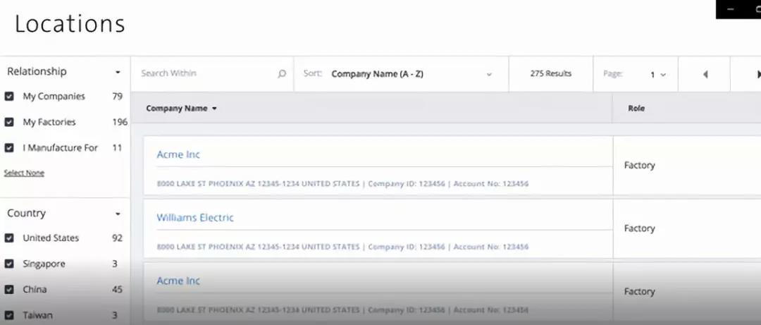 點擊Locations,可以看到關(guān)聯(lián)公司信息: